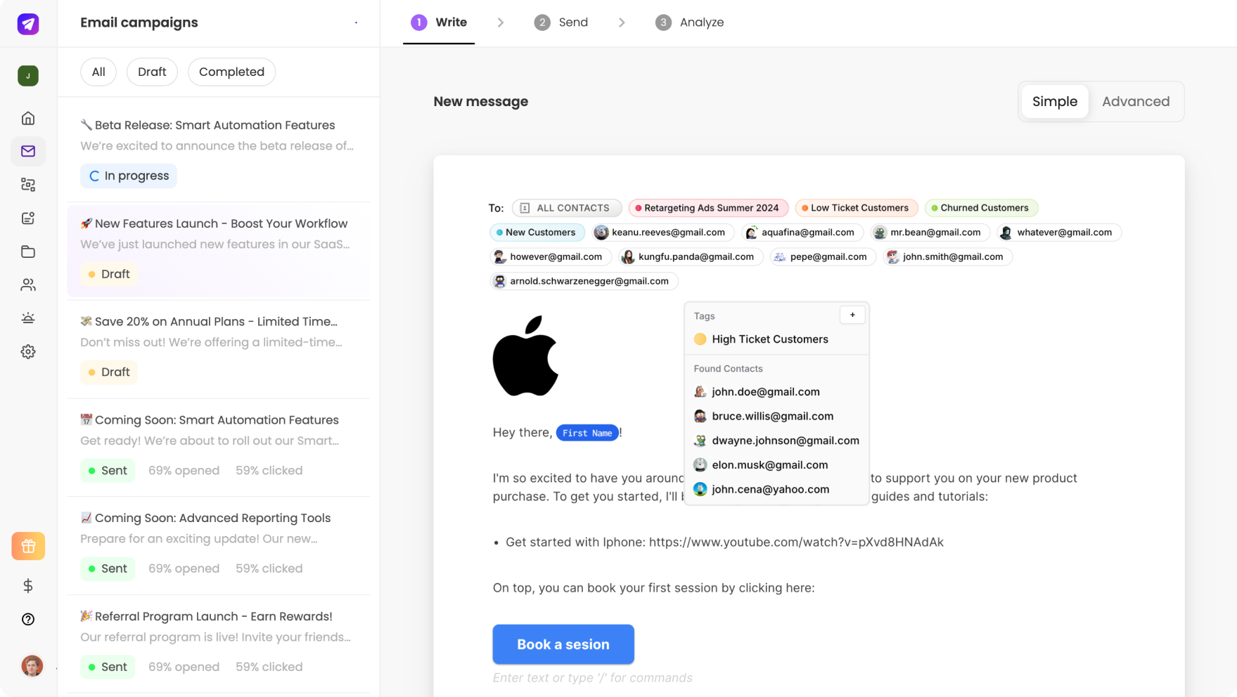 The email editor is incredibly easy to use, and the analytics are extremely helpful for improving campaign performance. Highly recommended!